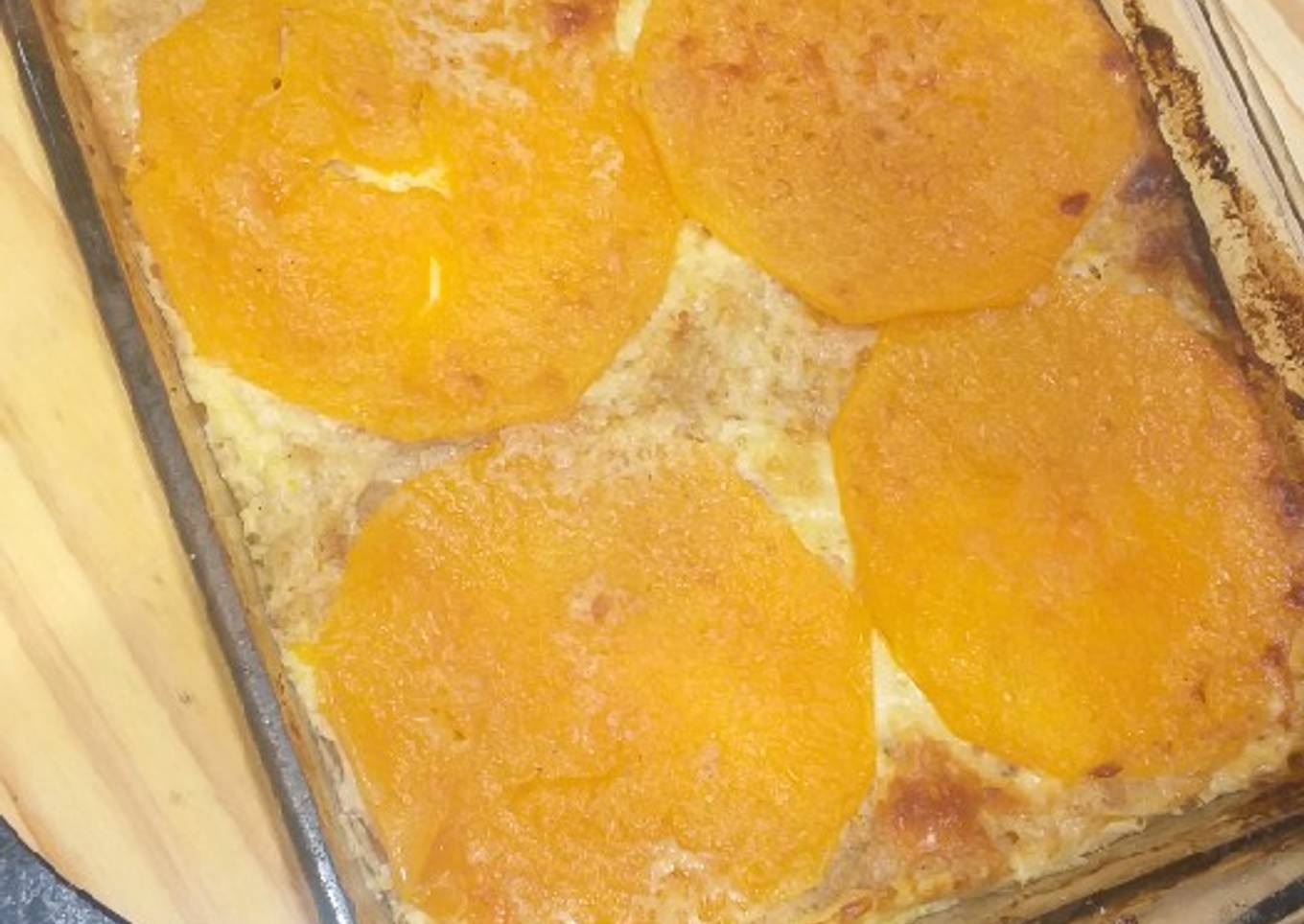 - Lo terminamos con crema y queso rallado al horno medio bajo tapado con papel de aluminio por 45 minutos aprox o hasta que este blanda la calabaza
