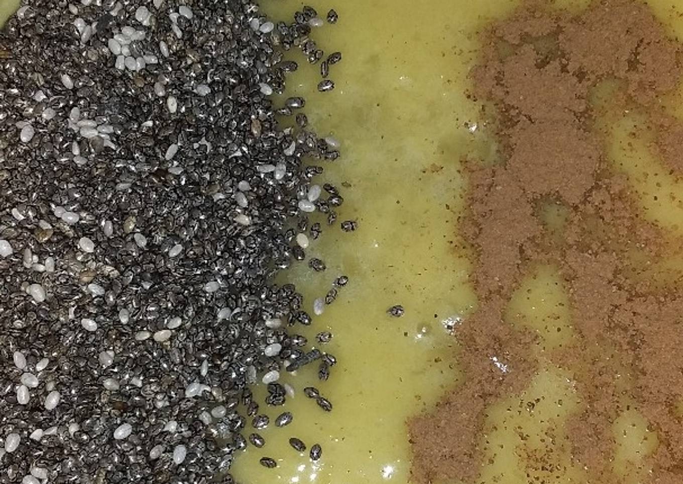 - Limpiamos, quitamos cáscaras de las frutas incluso del jengibre. Ponemos en la licuadora con el agua y el edulcorante. Batimos y luego le agregamos como toque final canela y chía.