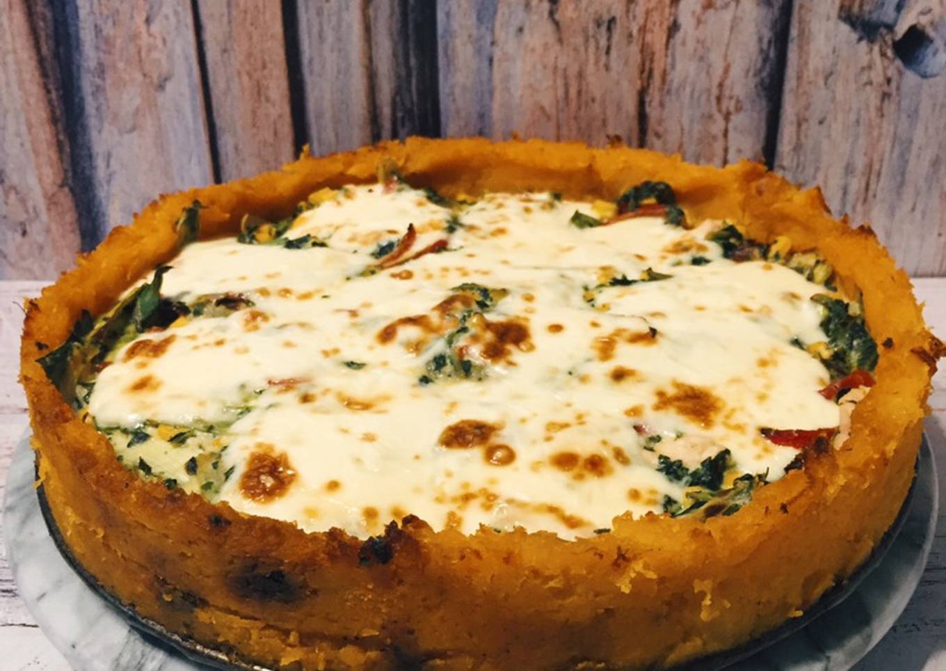 Tarta de pollo y verduras en masa de puré de calabaza (sin harina)