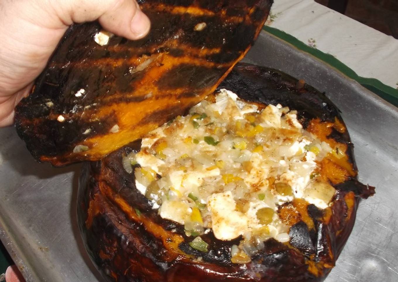 - Finalmente rellenamos la calabaza con la mezcla de quesos y aceitunas, dejamos unos 5 minutos en la parrillera y luego retiramos del fuego..... y a disfrutar!!!