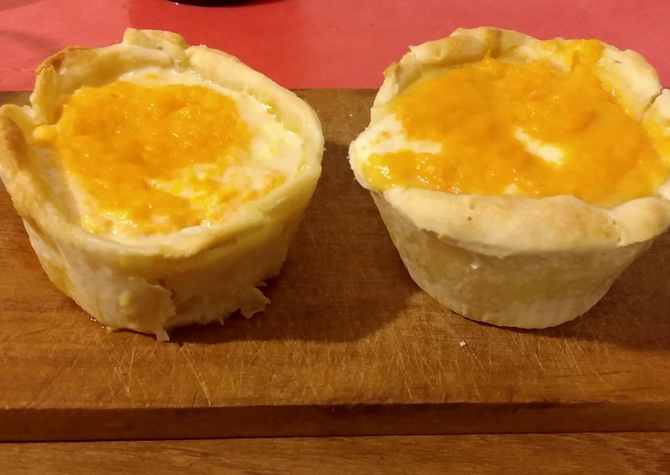 - Estirar la masa y colocarla en molde de muffin. La receta rinde para dos grandes. Añadirle el relleno. Llevar a horno unos 15 min o hasta que estén doradas. Dejar que se enfríe el molde y desmoldar.