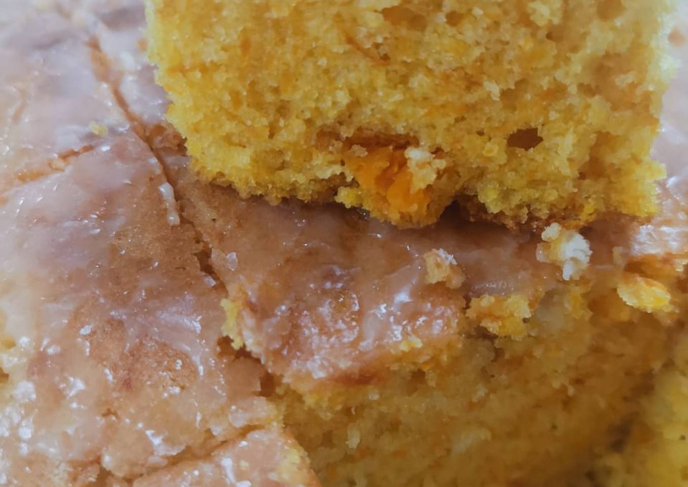 - Hacemos el glaseado mezclando el azúcar impalpable con el jugo y se lo tiramos arriba de la torta.