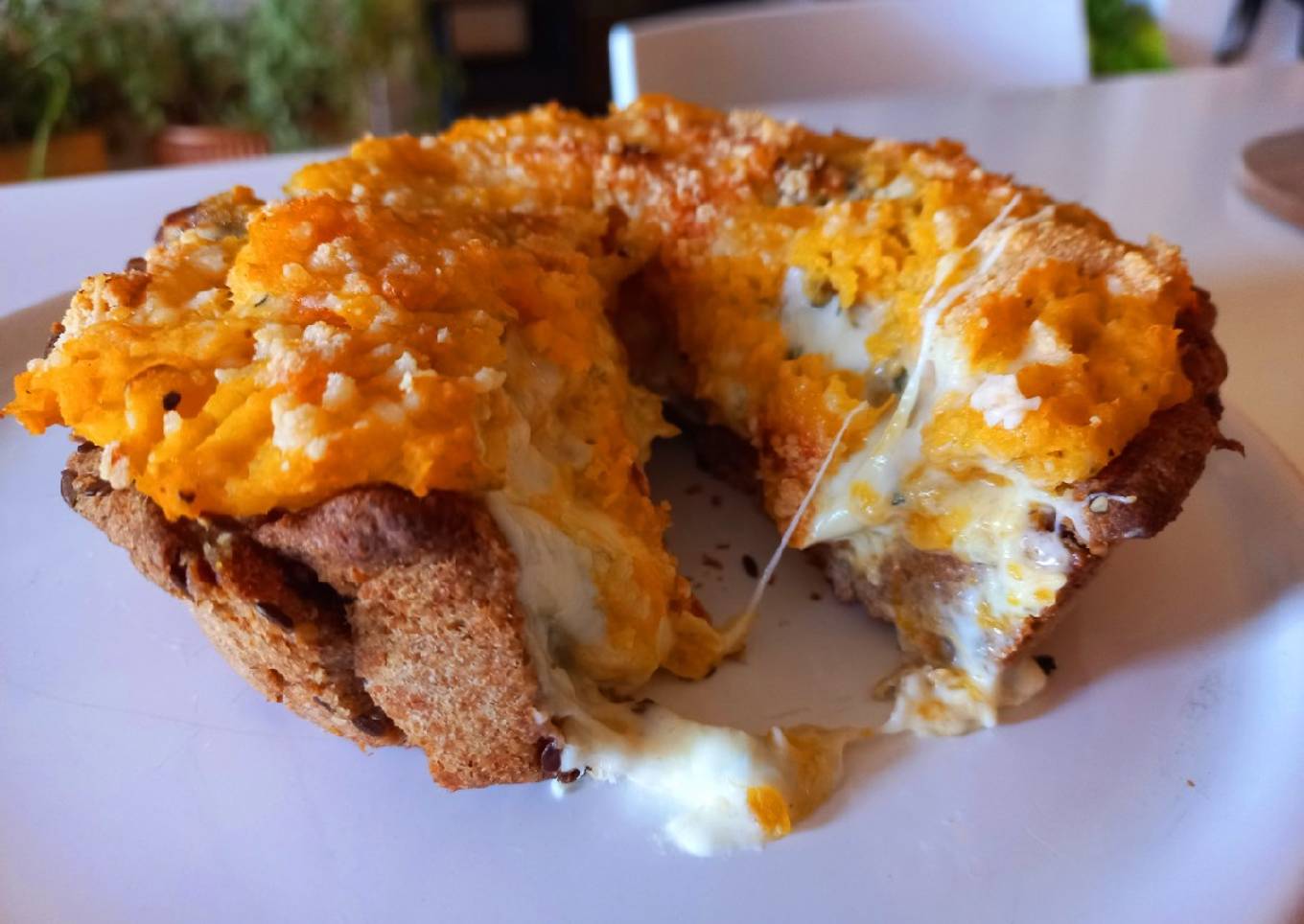 - Hervir la calabaza y formar un puré. Agregar el queso blanco, nuez moscada y salpimentar. Reservar.