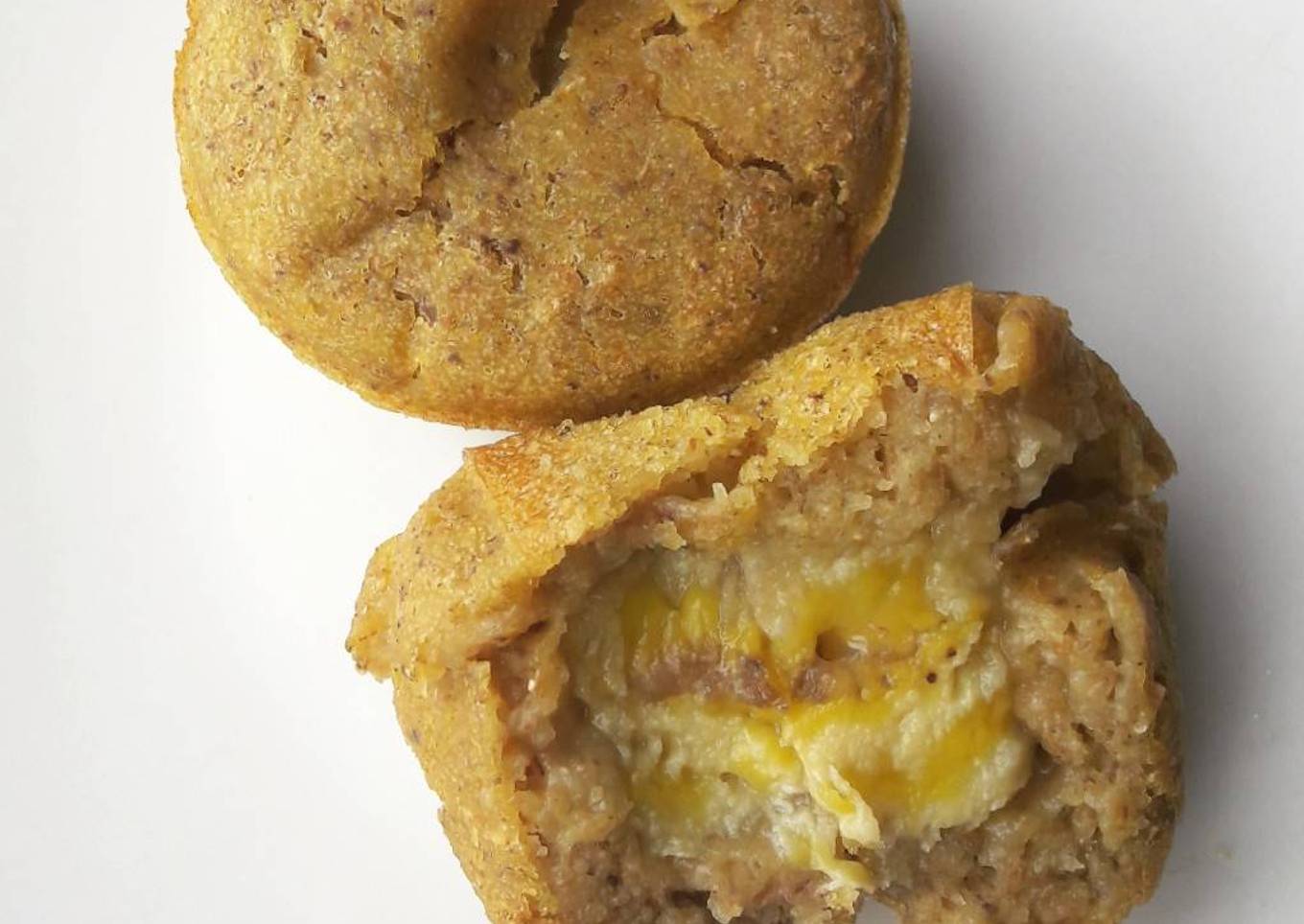 Buñuelos de calabaza (ahuyama) rellenos de banano, horneados