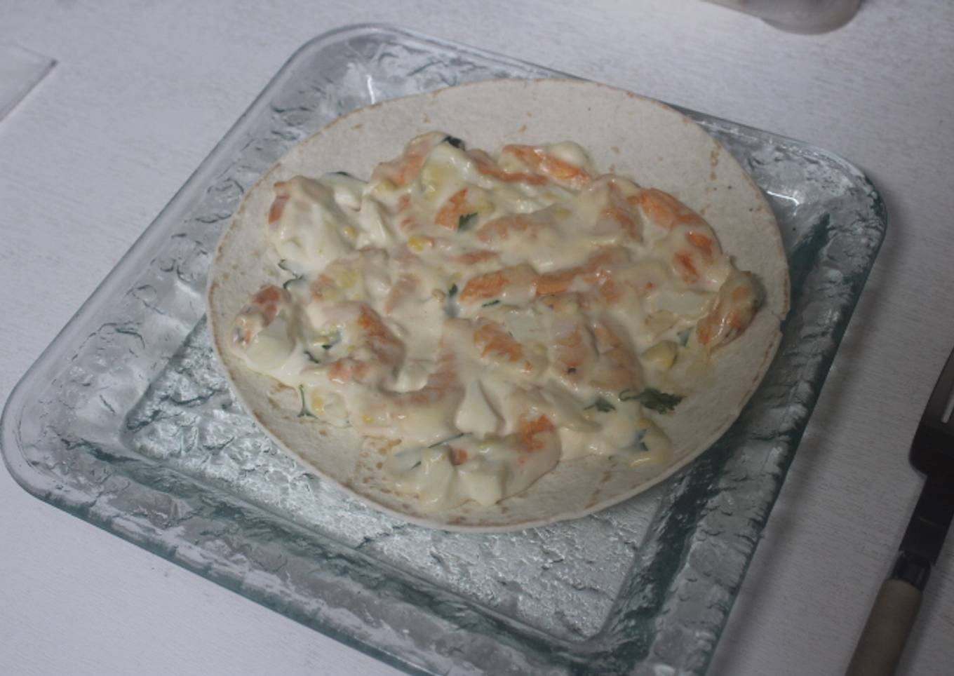 - Mezclamos bien y repartimos sobre ambas tortitas.