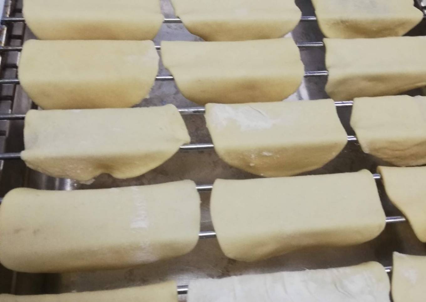 - Dejamos reposar en un sitio caliente unos 30 minutos, cortamos la bola en porciones y la dejamos tapada otros 15 minutos que vuelvan a fermentar