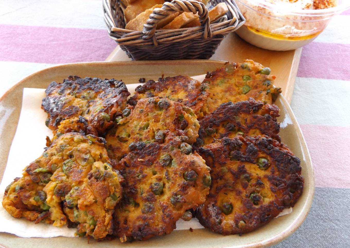 De otra preparación me sobraron unos guisantes y una batata cocidos. Con un poquito de harina de garbanzos y unas cositas que siempre tengo en casa hice unas tortitas deliciosas.