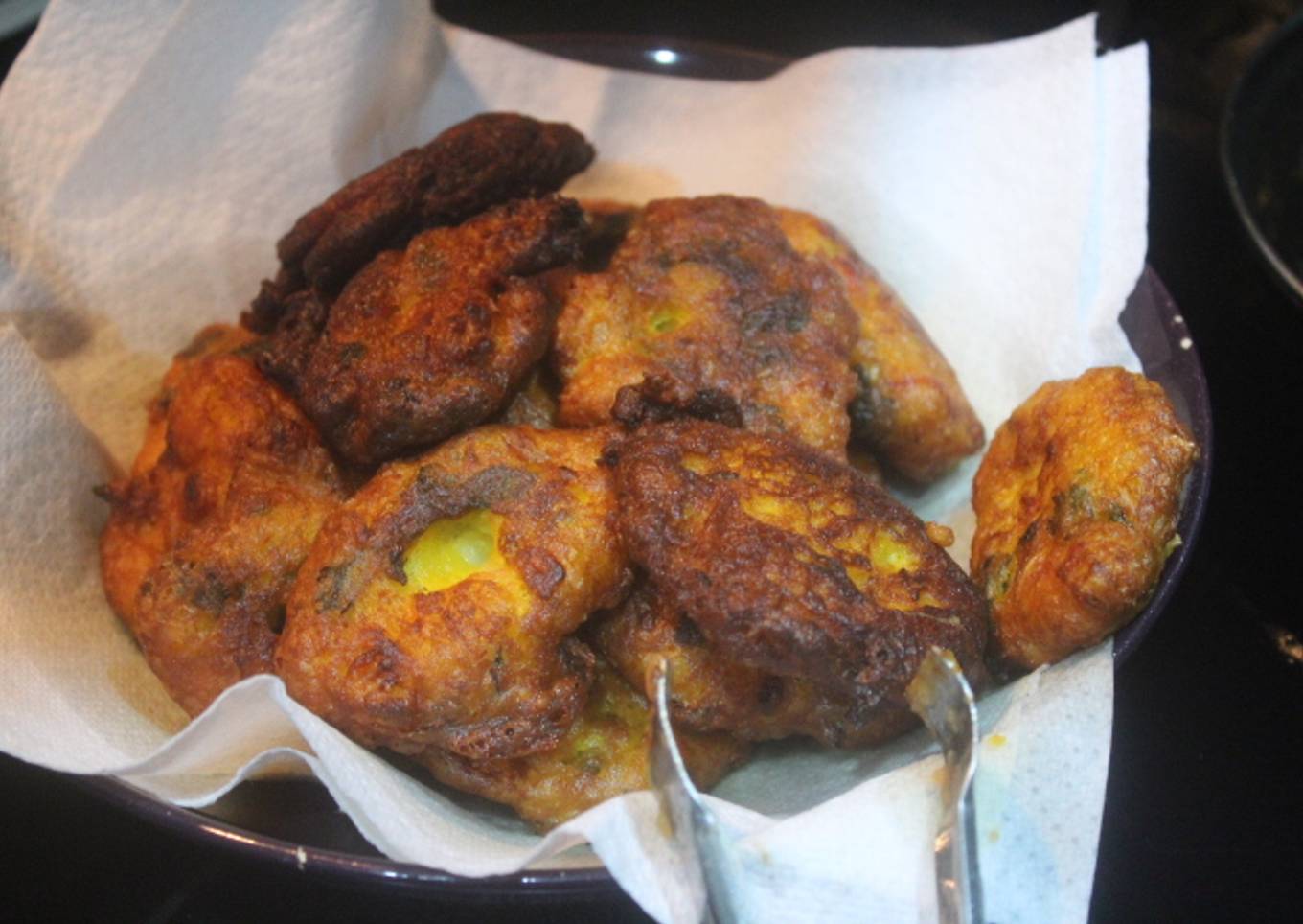 - Una vez doradas las tortitas las colocamos sobre papel de cocina para que suelten el exceso de aceite.
