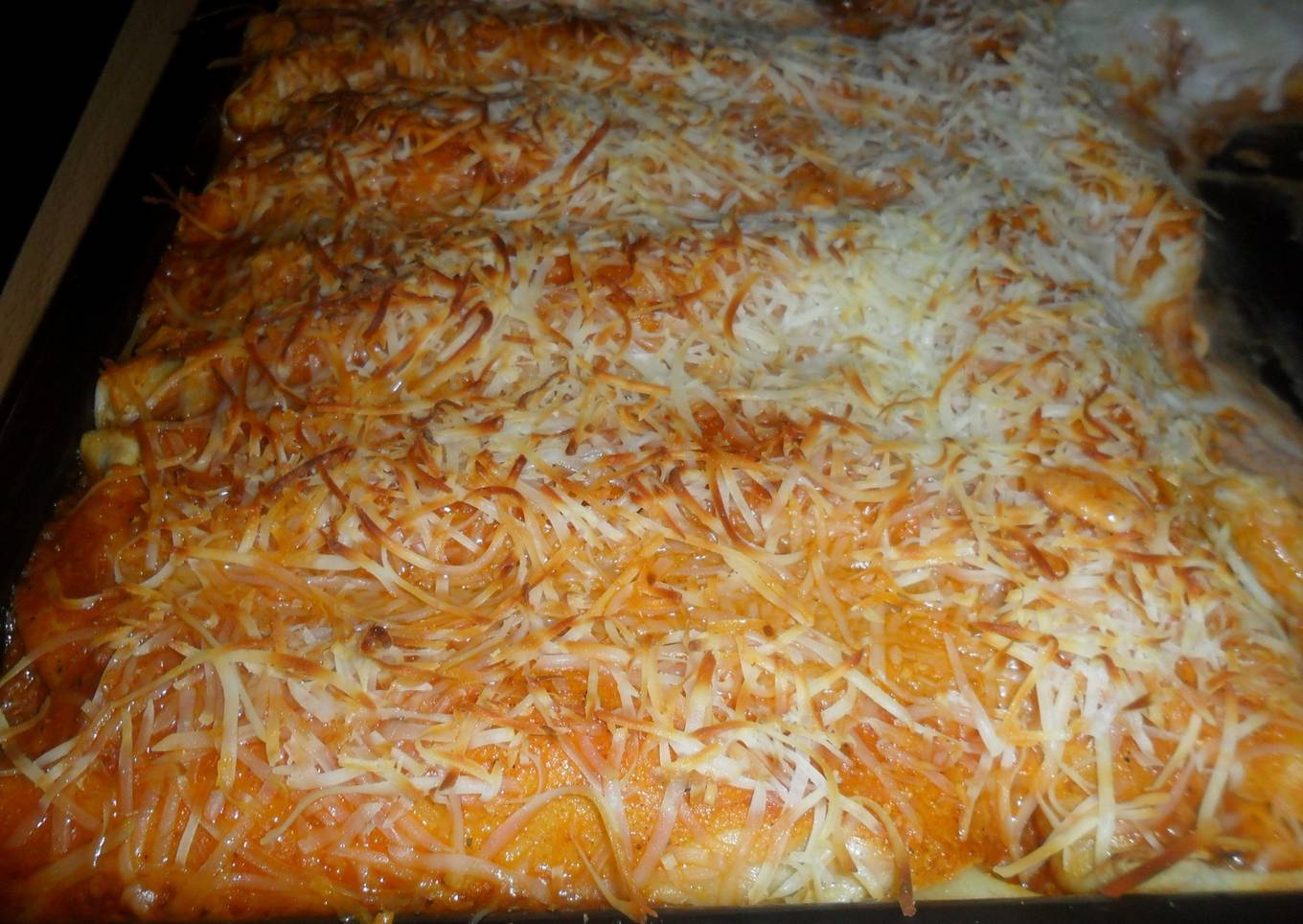 - Cubrir con la salsa de tomate o con la salsa bechamel, o con ambas y calentar en el horno entre 10 y 15 minutos.